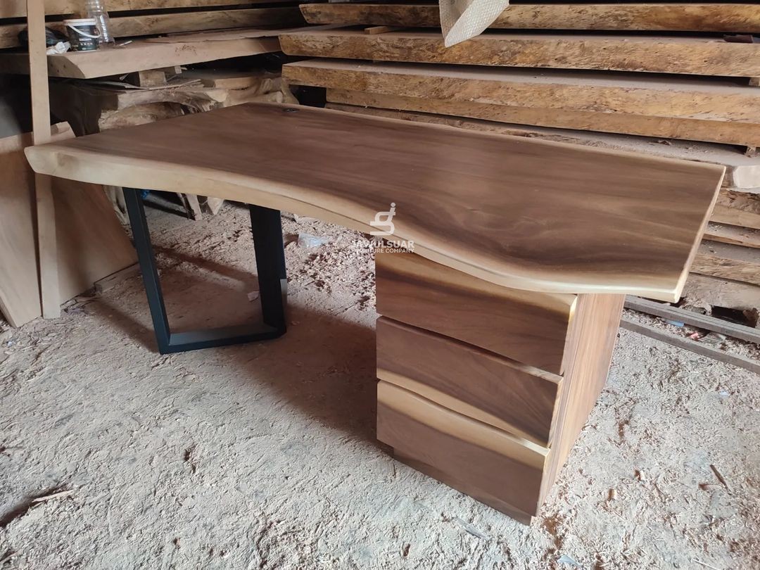 Caring for Your Natural Treasure: Owning a natural wood slab desk is an investment in both style and longevity. With proper care, this handcrafted piece can become a cherished heirloom. Regular dusting, occasional oiling, and avoiding harsh chemicals will ensure your desk retains its natural beauty for years to come.